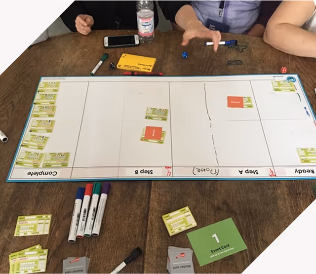 Together we’ll simulate real-world work scenarios via a board game (Okaloa Flowlab) helping you identify and eliminate bottlenecks, inefficient processes, and unhelpful feedback loops.